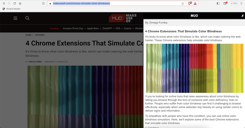 Visit any web article page. Try this one – https://www.makeuseof.com/chrome-simulate-color-blindness/