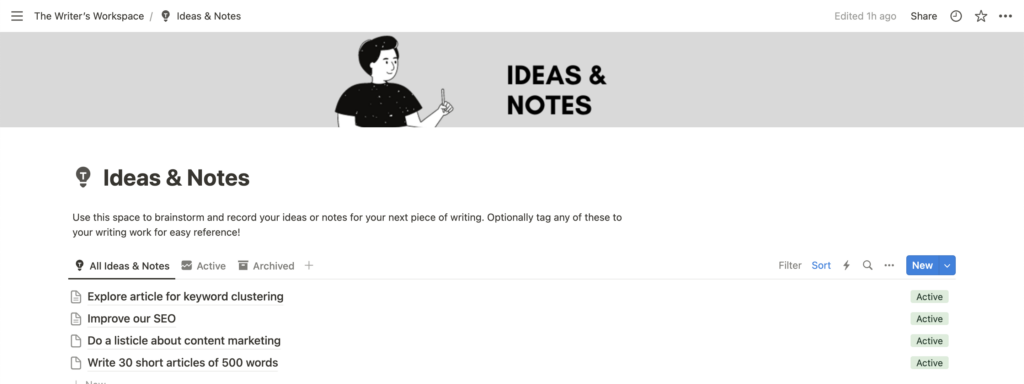 Ideas and notes that are marked “Active” are displayed in this section. This way, you can have a quick glimpse of only the relevant notes from this page.