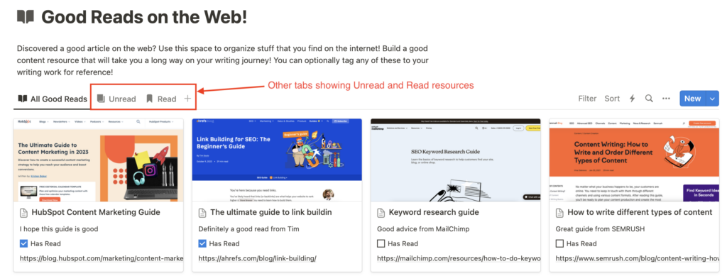 As a content writer, you can track the progress of your work and dive into your reading library, to-do or notes all in one place. Never run out of ideas or miss a deadline again!
